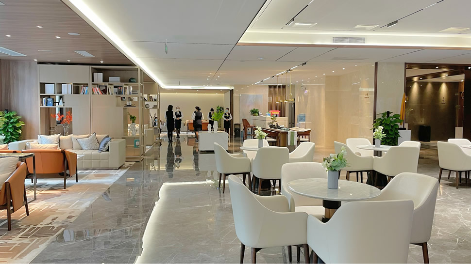 在项目落地实施前,荣邦环境就参与售楼中心整体设计方案。前期与甲方、精装单位、设计单位积极沟通空调新风系统实施方案,针对项目实施特点,提出有助于推升项目品牌溢价的实施亮点。